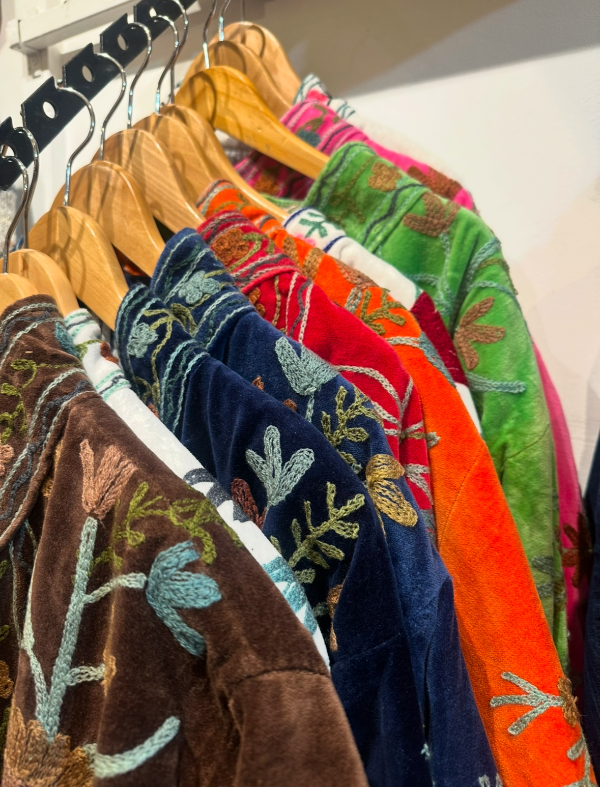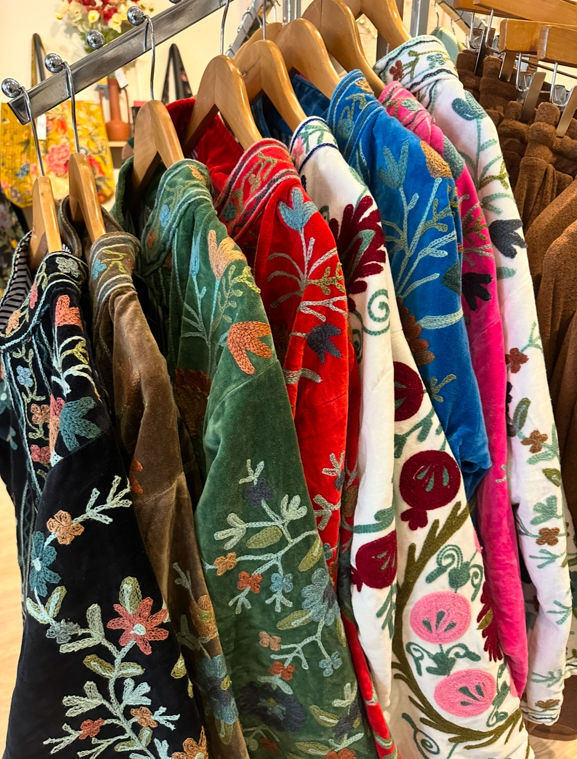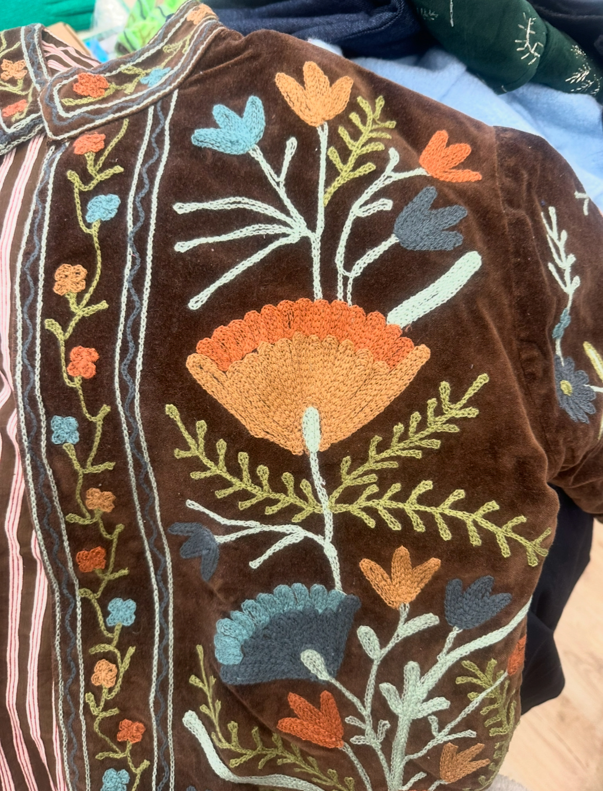 Suzani Embroidery Velvet Jacket £79.95 3-5 working days Add to cartLogin for wishlistPay directFree shipping From £20.00Share Facebook Pin it WhatsappAdd to comparison list