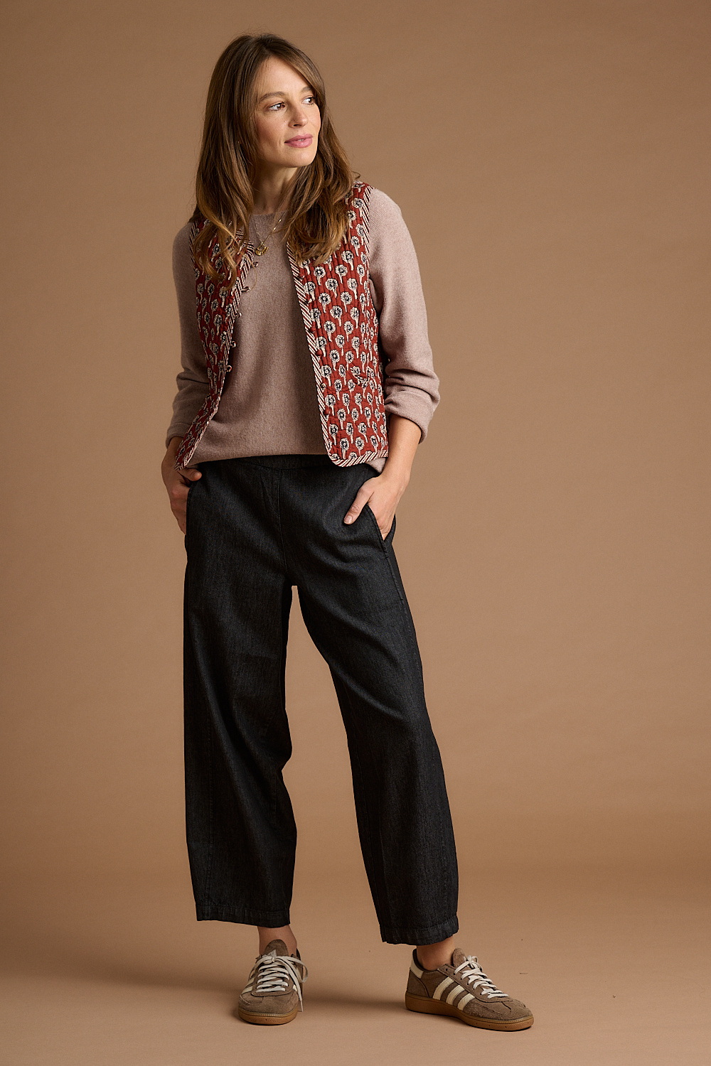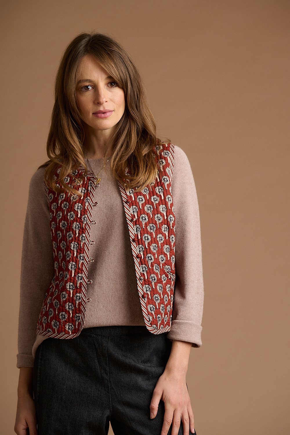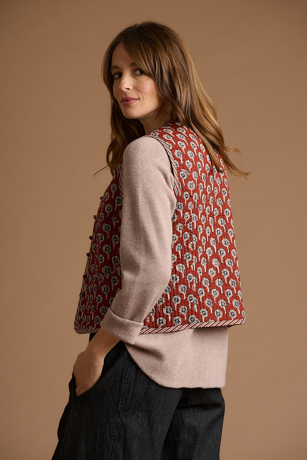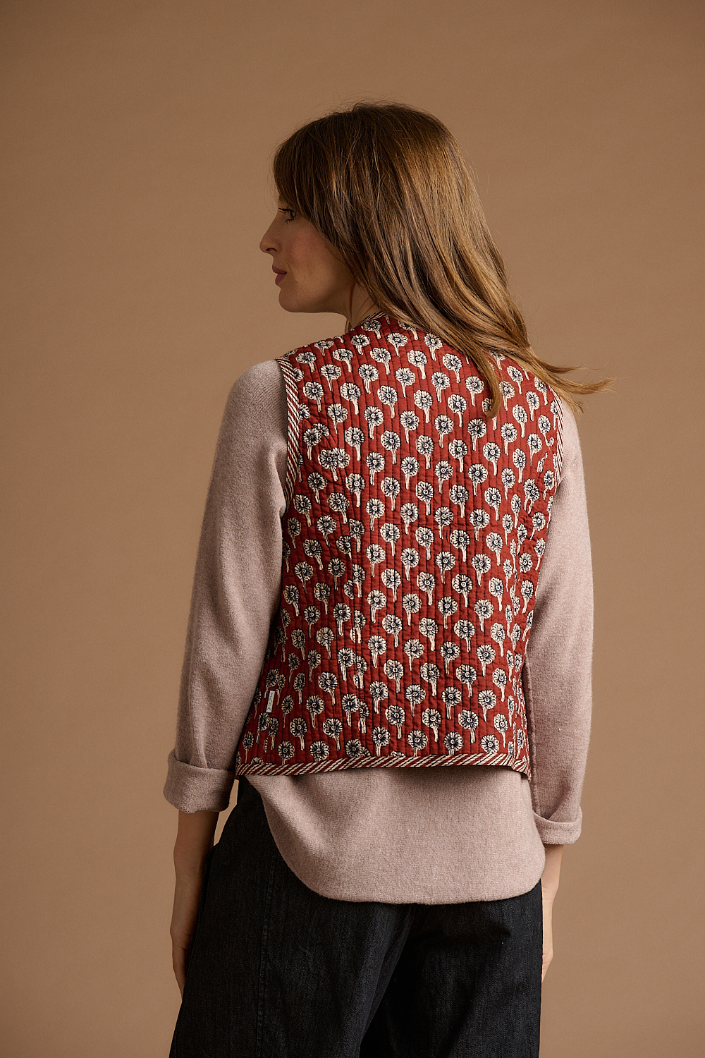 Jaba Quilted Gilet in Rust Daisy
