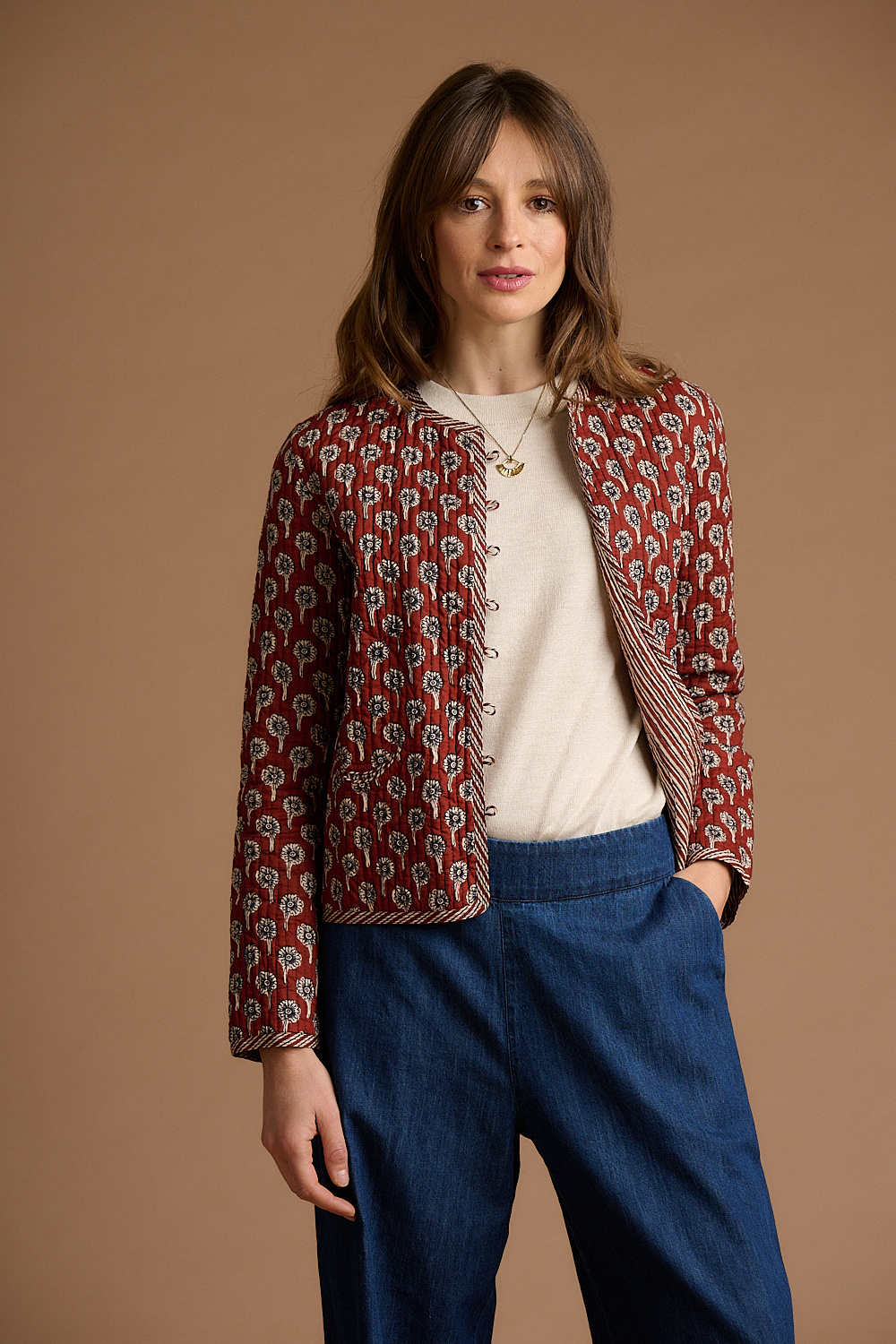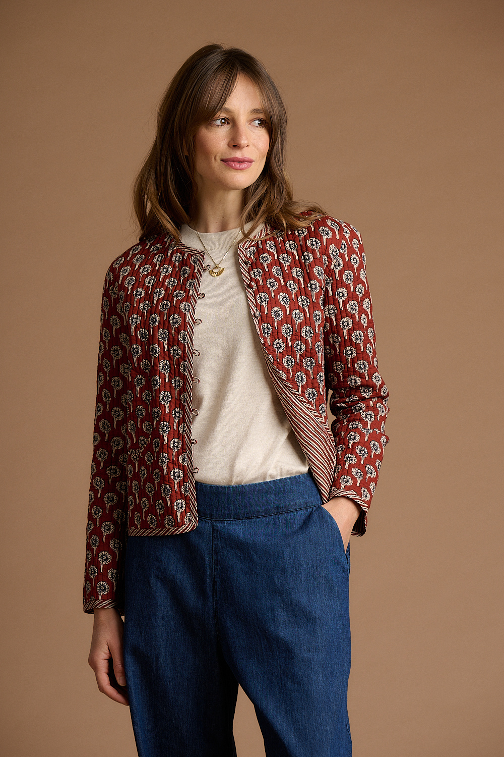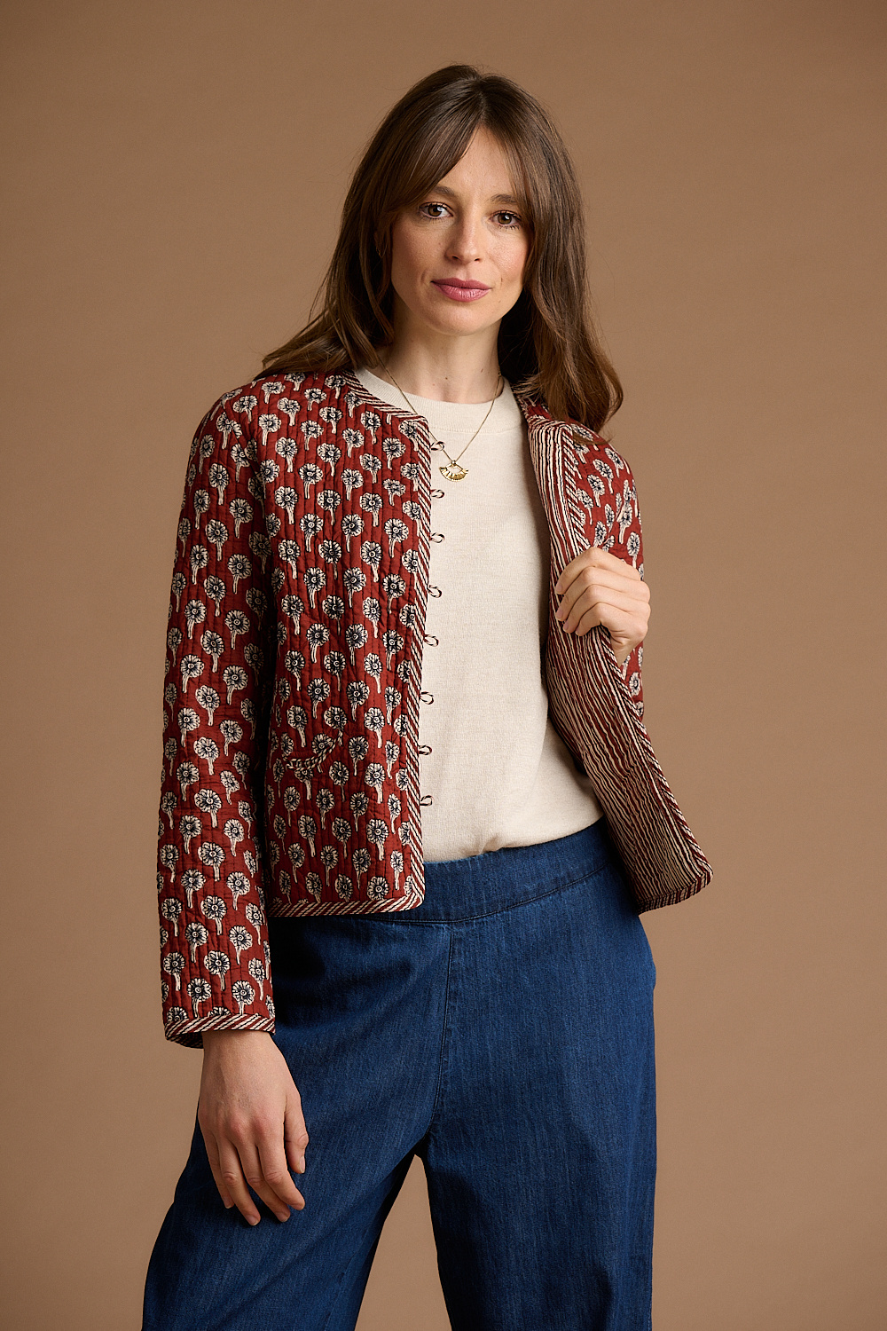 Jaba Quilted Jacket - Rust Daisy £55.00 3-5 working days 10 12 14 16Size: *10121416Add to cartLogin for wishlistPay directFree shipping From £20.00DescriptionShareIt's here! Our best selling soft, lightly quilted cotton reversible jacket. The perfect mid-season piece. Facebook Pin it WhatsappAdd to comparison list